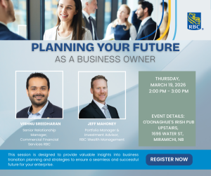 We are pleased to invite you to an exclusive event presented by RBC Commercial Banking, Greater Miramichi Service Commission and RBC Dominion Securities (Wealth Management).
