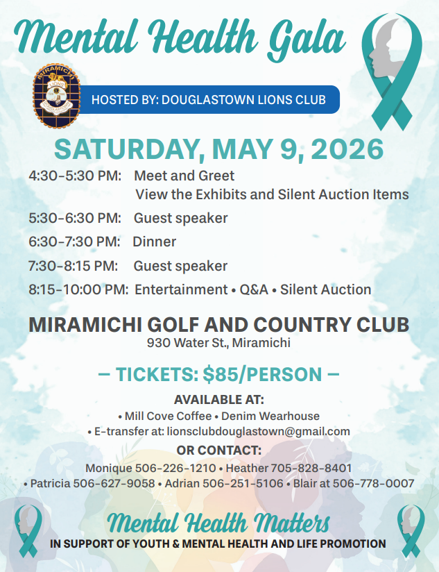 Miramichi Golf & Country Club 930 Water Street, Miramichi, Miramichi, CanadaFundraiser event in support of Mental Health. This is an event that includes Speakers, 3 course meal (vegetarian and gluten…