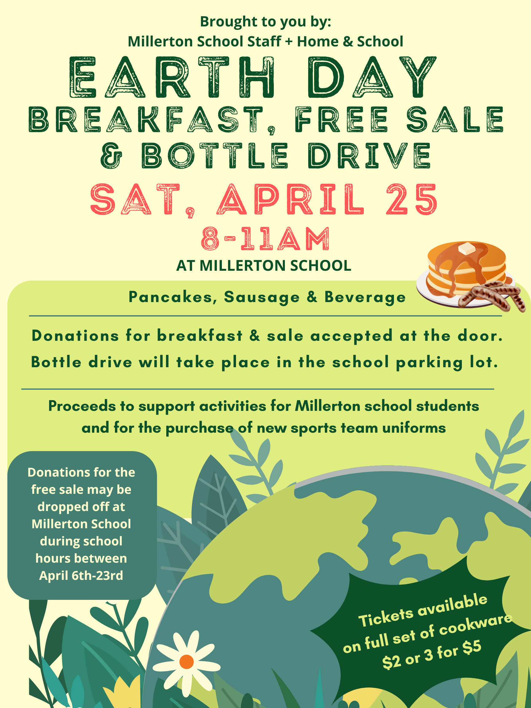 Earth Day Breakfast, Free Sale & Bottle Drive Apr 26 Earth Day Breakfast, Free Sale & Bottle Drive 8:00 am - 11:00 am
